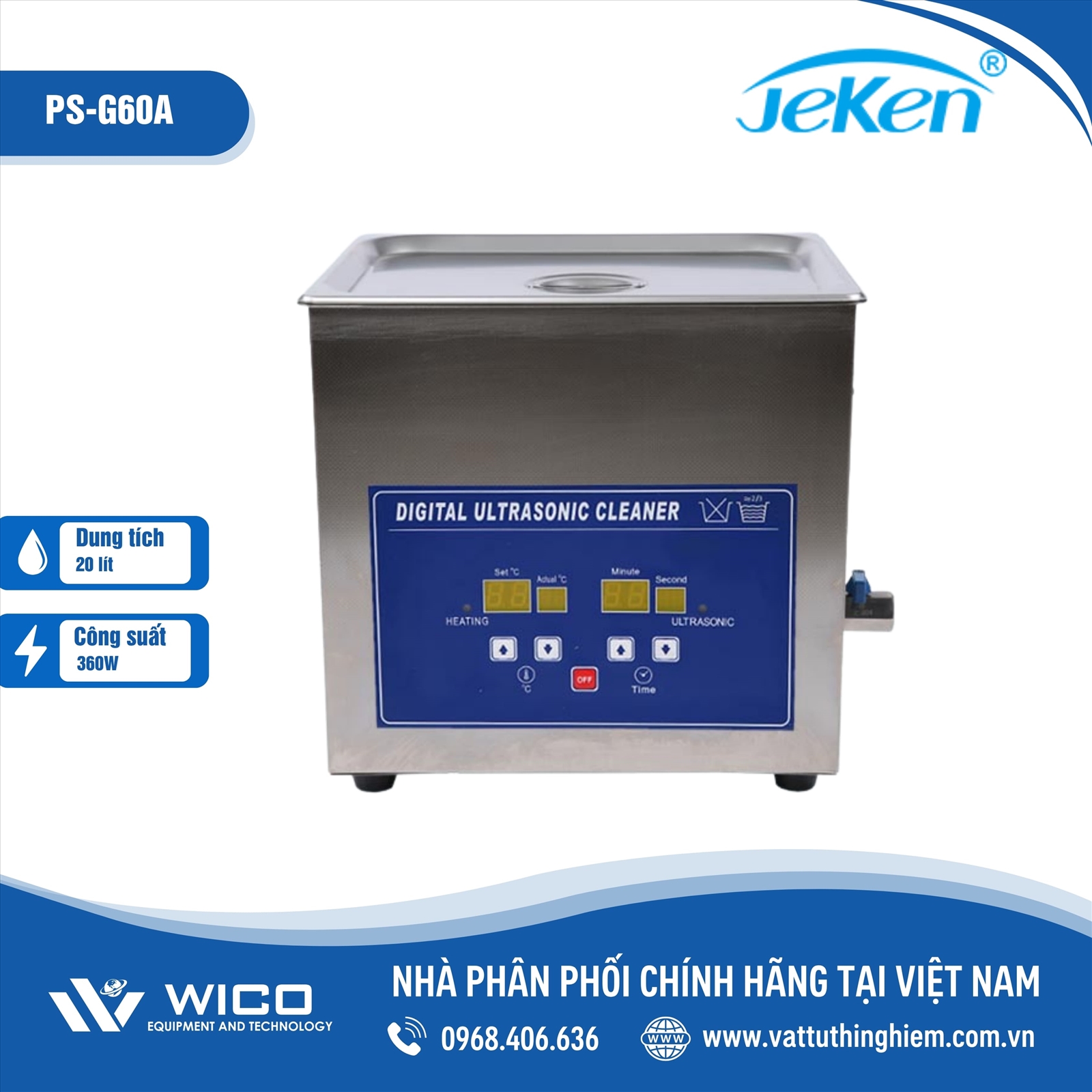 - PS-G60A là bể rửa siêu âm thuộc dòng PA-A series do hãng Jeken – Trung Quốc sản xuất. Bể được trang bị đầu siêu âm công suất lớn với tần số 40kHz cho hiệu quả làm sạch vượt trội, hiệu quả có thể thấy rõ bằng mắt thường chỉ sau 1 lần rửa.