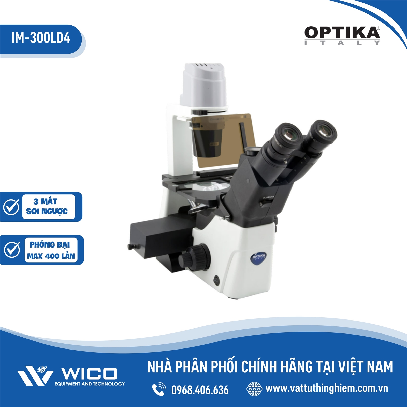 IM-300LD4 là kính hiển vi soi ngược 3 mắt cao cấp do hãng Optika - Italy sản xuất. Sản phẩm được nhập khẩu và phân phối chính hãng bởi Vattuthinghiem. Kính sử dụng 03 vật kính 10X -20X - 40X cho hình ảnh chân thực và sắc nét. Kết hợp cùng thị kính 10X thị trường rộng lên tới 22mm cho độ phóng đại tối đa 400 lần. Kính được sử dụng hữu ích cho việc quan sát tế bào sống hoặc sinh vật ở đáy một vật chứa lớn, ứng dụng trong nuôi cấy thế bào, mô sống, vi sinh vật học,…