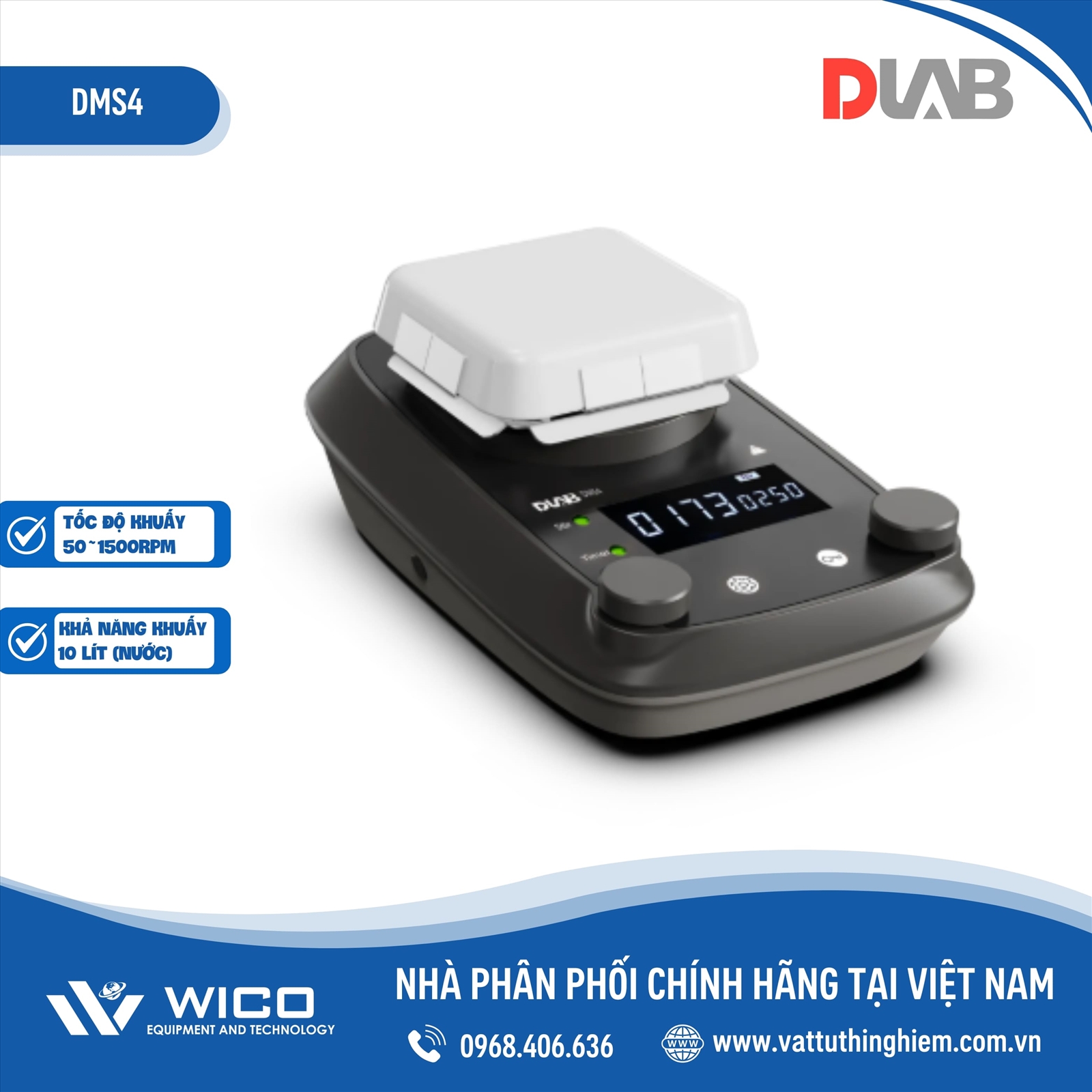 - Dải tốc độ khuấy: 50 – 1500 vòng/phút, bước tăng 1 vòng/phút